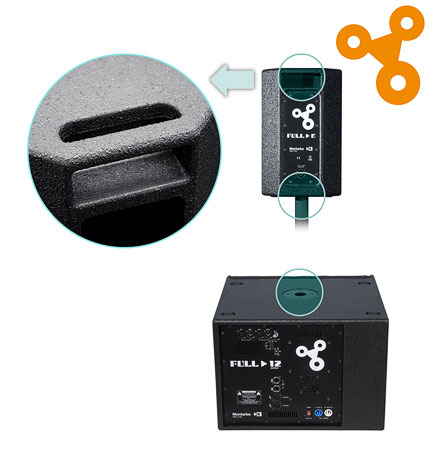 Le caisson bass, FULL 12, dispose de toute l’électronique nécessaire au traitement des données et à l’amplification de tout le système. Il est en effet équipé de amplificateurs de classe D contrôlés par le processeur DSP Montarbo (56 bits, 180 MHz, convertisseur à 24 bits) avec fonctions de filtrage, d’égalisation, de retard, de limitation et de diagnostic. Ce DSP dispose d’une méthode avancée de contrôle de l’énergie distribuée par l’amplificateur et de la température de ce dernier, qui tient également compte de la température externe et il dispose d’une fonction spéciale pour réduire la consommation d’énergie en l’absence de signal (stand-by).